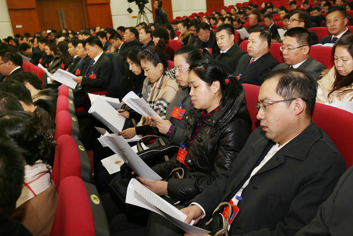 出席市政协七届四次会议的委员们认真听会