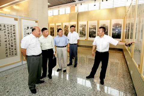 市委书记赵晓君、市政协主席杨枫、市委常委秘书长闫旭陪同省政协副主席王尔智、省政协书画院院长蒋力华参观书画展