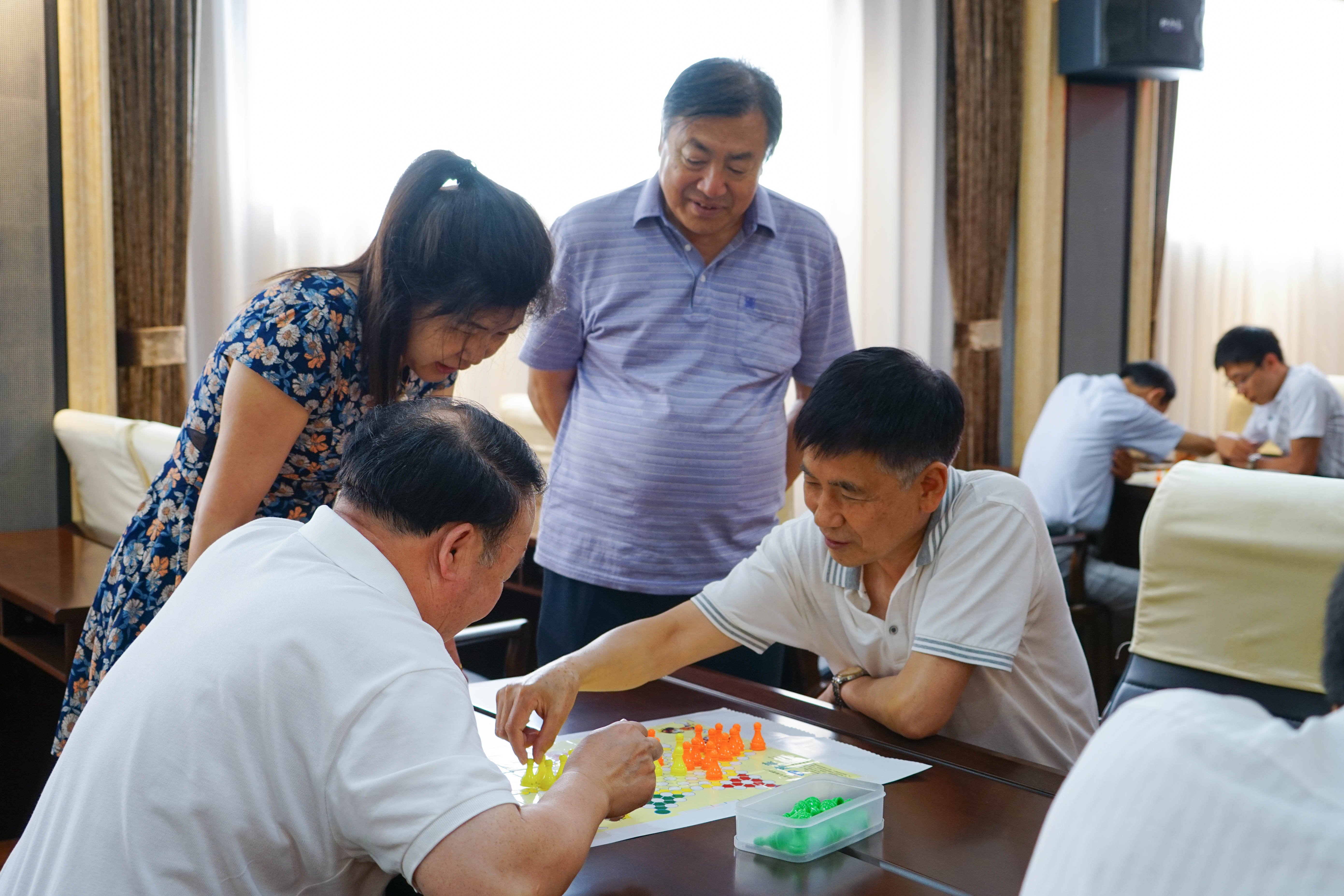 6?9日,市政协机关党?/span>为庆祝中国共产党建党96周年,丰富机关文体生活,展示机关干部的精神面貌,增强政协机关的凝聚力和战斗力,组织举办了市政协机关迎“七一”职工跳棋比赛,机关全体干部参加。通过此次活动,进一步树立了市政协机关“政治强、业务精、作风正、纪律严”的队伍形象,激发了广大干部爱党、敬业、奉献的热情与活力,增强了“讲政治,顾大局;讲原则,守规矩;讲学习,提素质;讲实干,求实效;讲团结,聚合力;讲人品,树形象”的能力素质?/span>